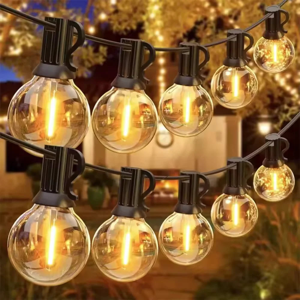 Używają żarówek girlandowych G40 i zawierają 2 zapasowe sztuki.