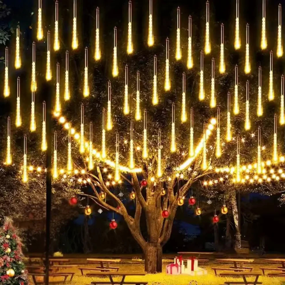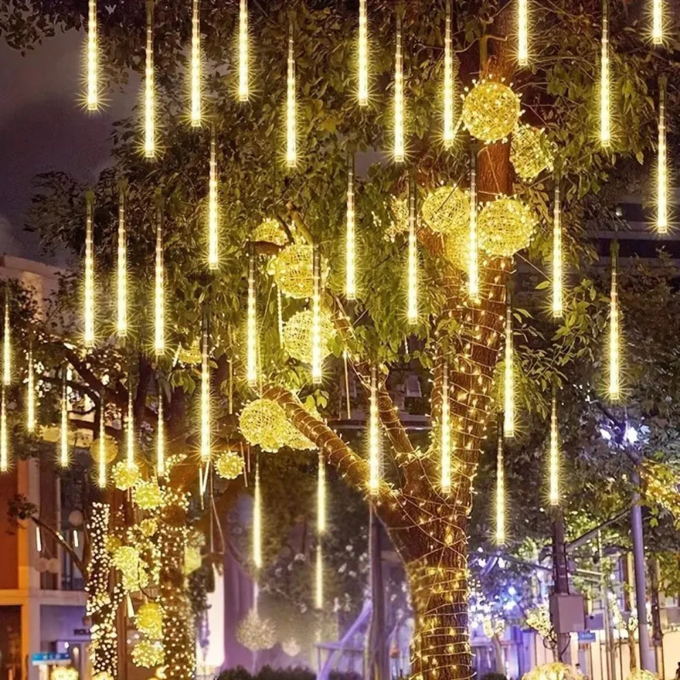 Lumora LED Lampki Deszczu Meteorów tworzą olśniewający pokaz kaskadującego światła, naśladując deszcz świecących gwiazd na nocnym niebie.