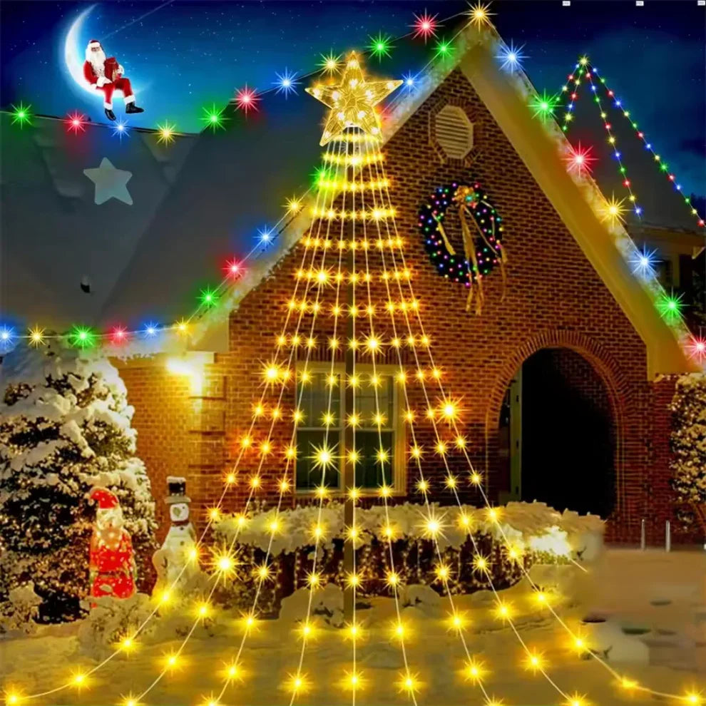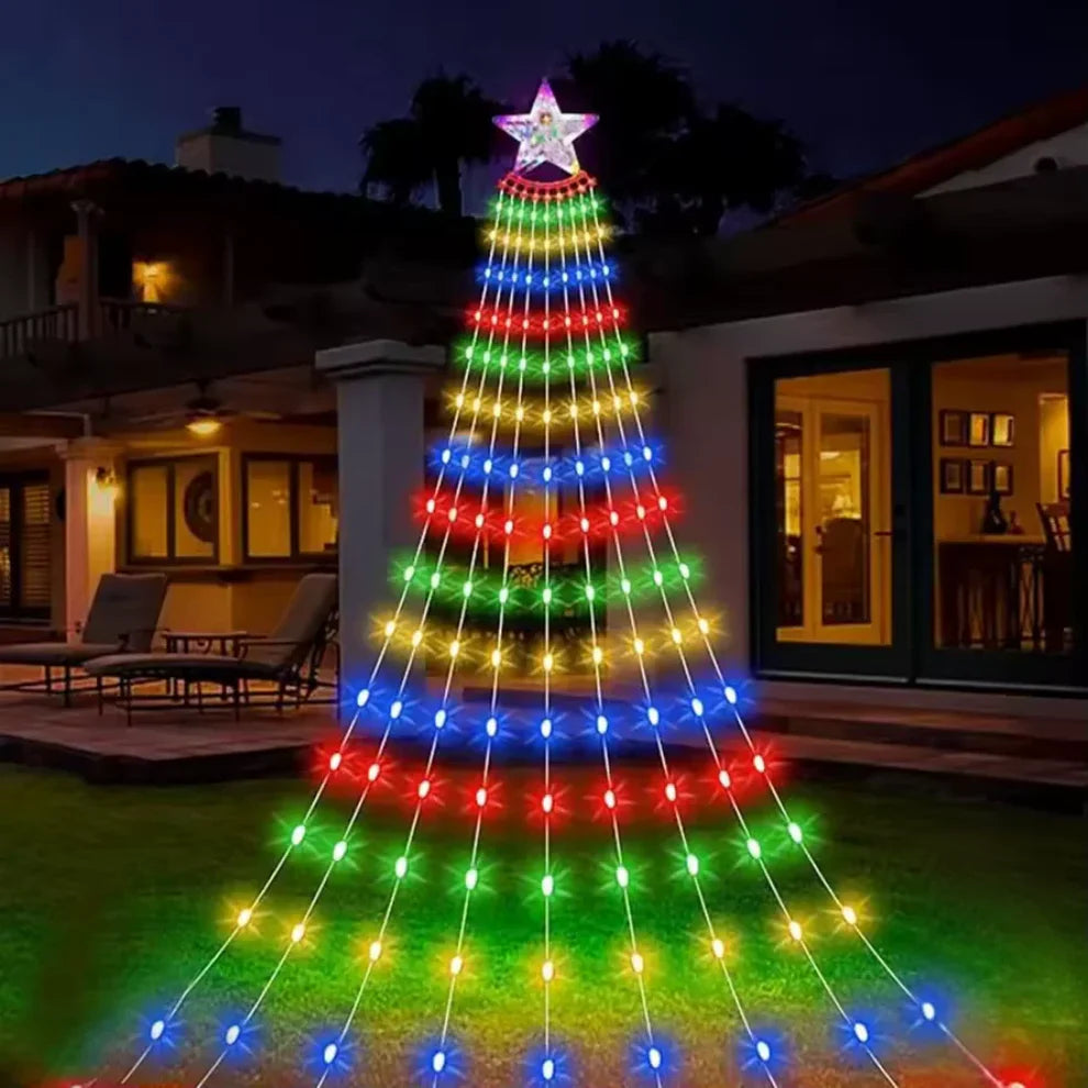 Zestaw zawiera 9 sznurów świetlnych oraz gwiazdę na szczycie.